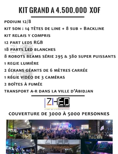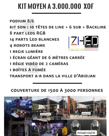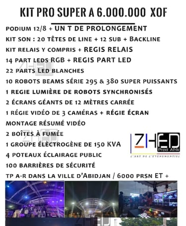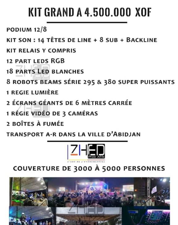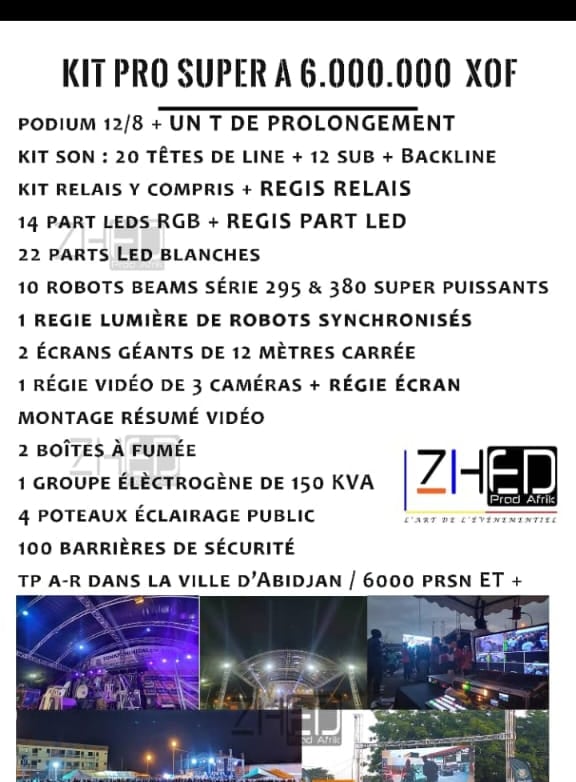 Les prix varient de 1.500.000 f xof à 6.000.000 f xof selon le kit choisi.