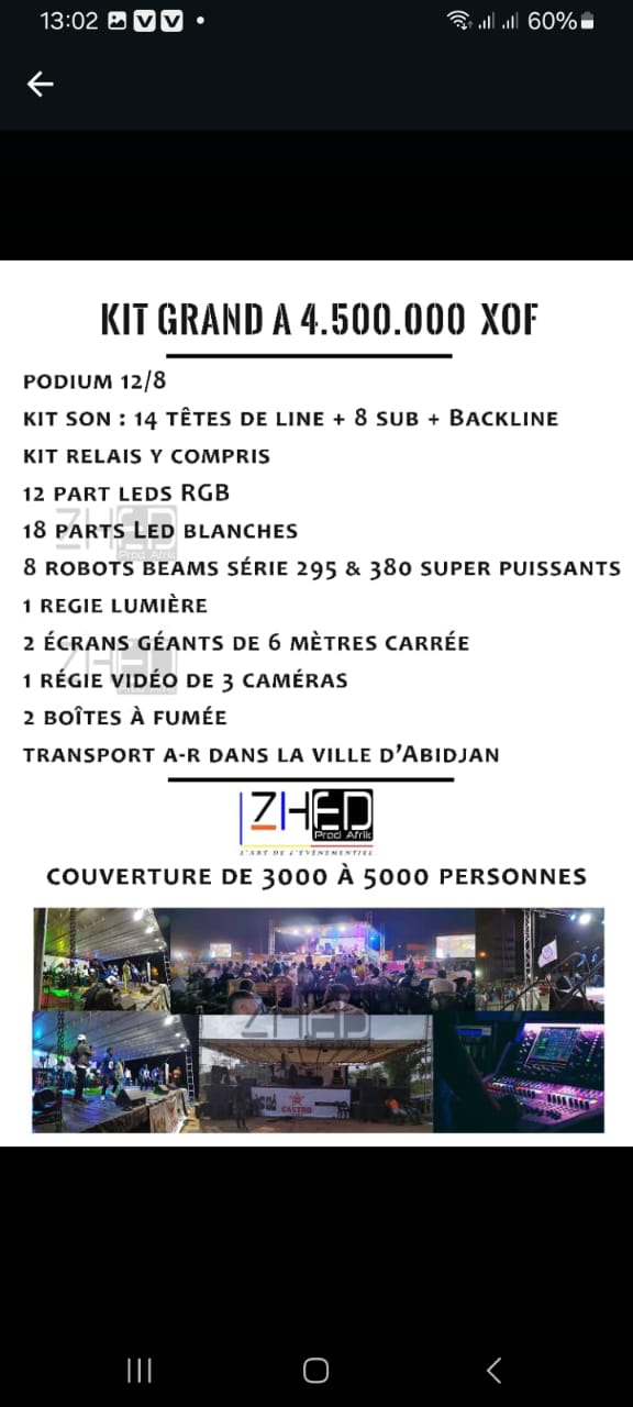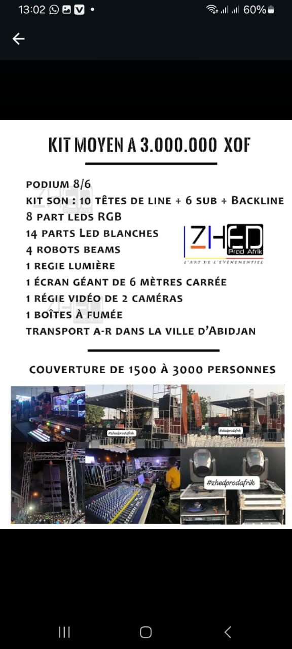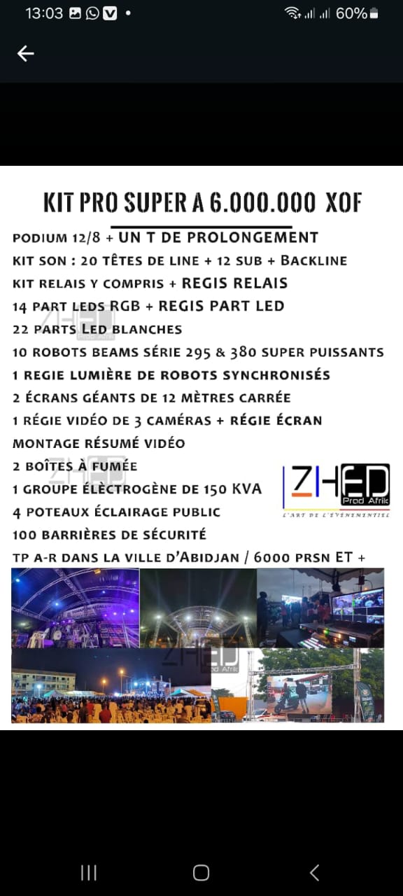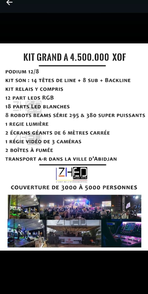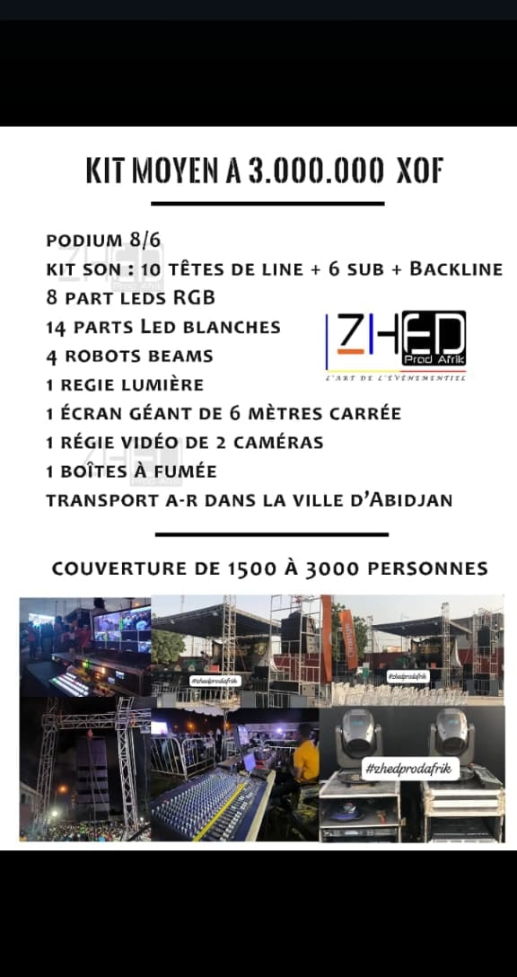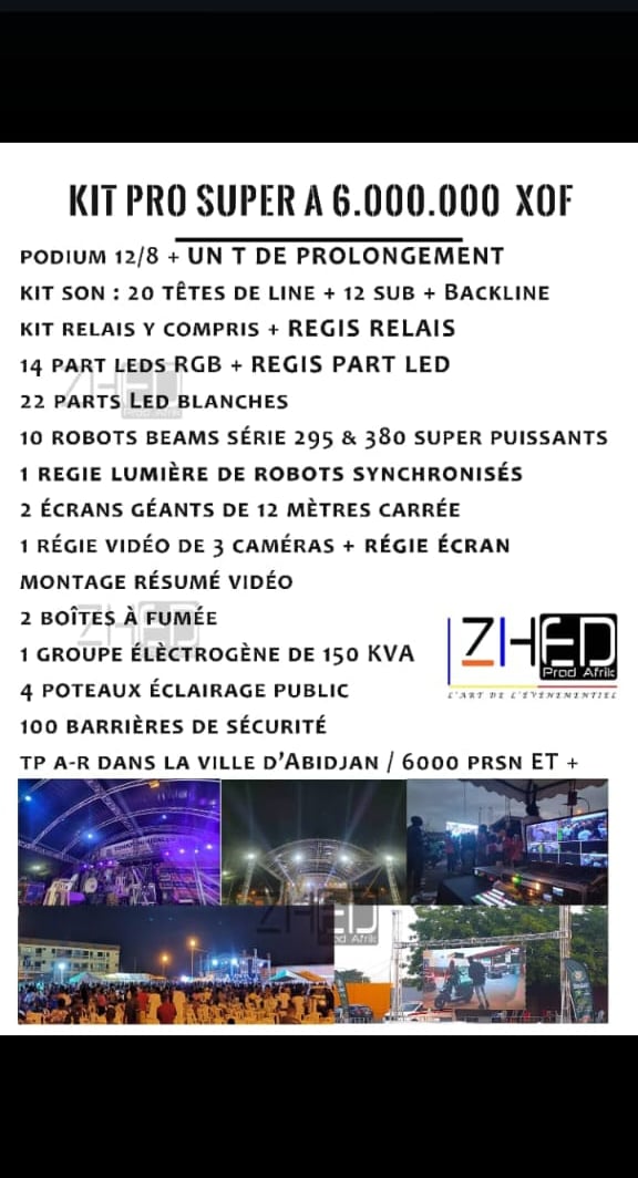 Les prix varient de 1.500.000 f xof à 6.000.000 f xof selon le kit choisi.