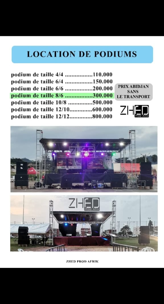 Cette section vous permet de louer uniquement la structure de scène si vous disposez déjà du reste du matériel (son, lumière, etc.) ou si vous le louez séparément.